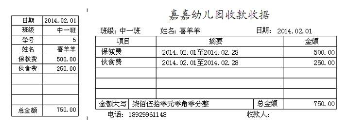 嘉嘉幼儿园收费易