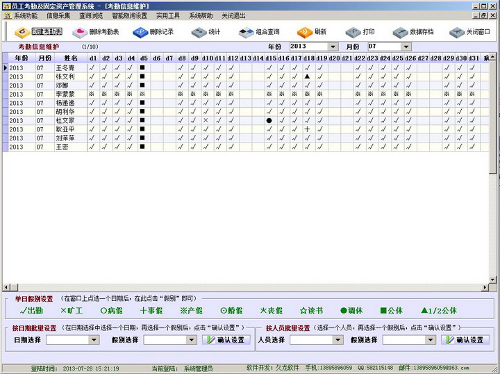 2楼 华军网友 2019-12-03 02:48:16久龙员工考勤及固定资产管理系统界面设计很容易上手,功能很丰富,本人极力推荐!