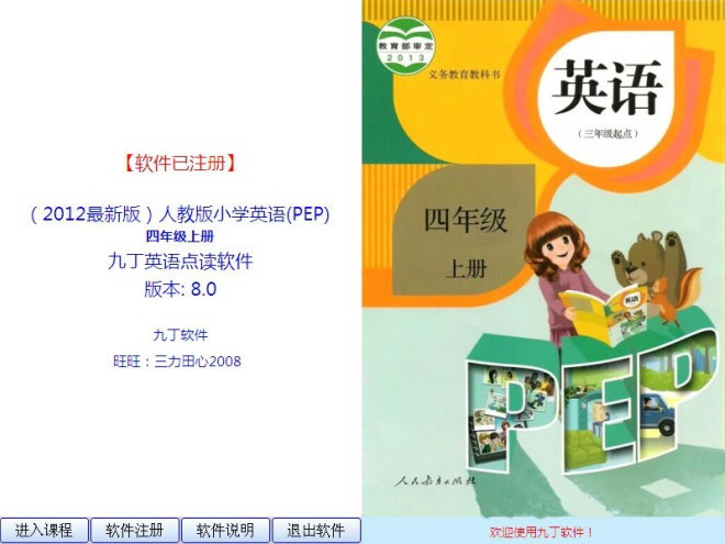 3楼 华军网友 2016-03-15 13:38:47最新人教版PEP小学英语九丁点读软件四年级上册还不错,下载非常快,送你个好评!