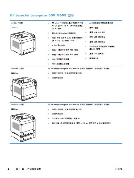 惠普HP LaserJet Enterprise 600 M602打印机说明书