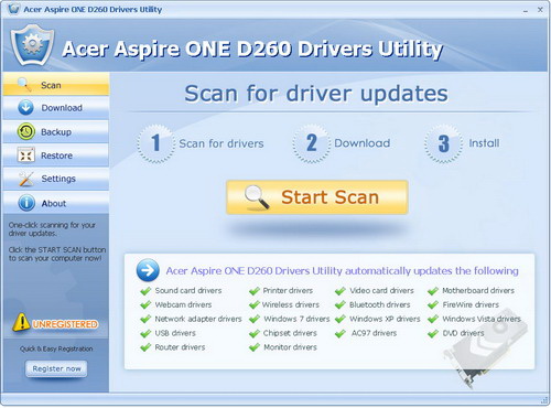 1楼 华军网友 2019-06-22 03:05:24Acer Aspire ONE D260 Drivers Utility界面设计很容易上手,功能很丰富,本人极力推荐!