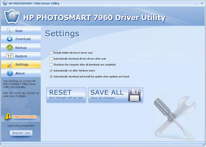 1楼 华军网友 2014-10-28 22:30:12HP PHOTOSMART 7960 Driver Utility界面设计很容易上手,功能很丰富,本人极力推荐!
