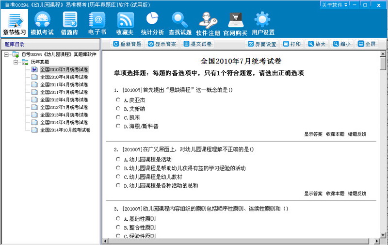 自考00394《幼儿园课程》易考模考[历年真题库]软件评论