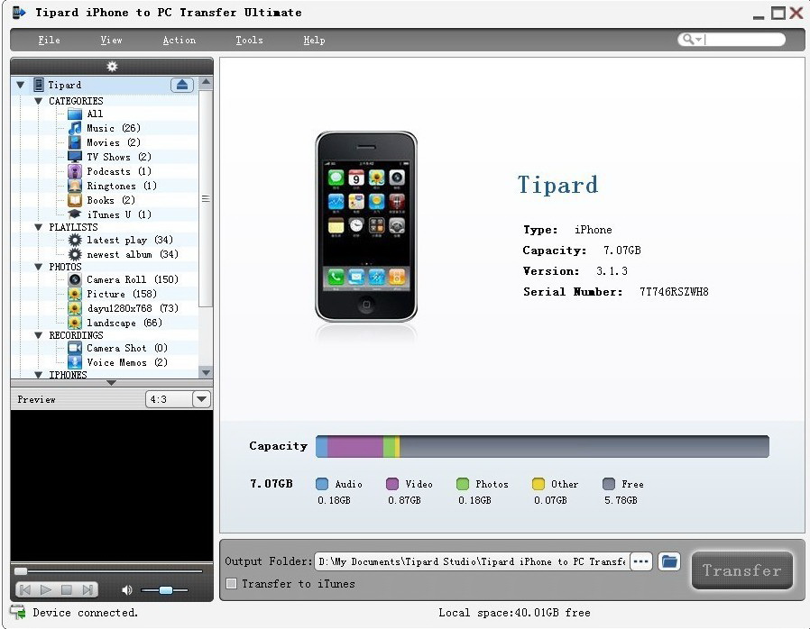 1楼 华军网友 2014-11-21 14:28:16Tipard iPhone to PC Transfer Ultimate界面设计很容易上手,功能很丰富,本人极力推荐!