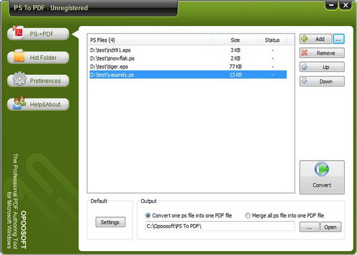 2楼 华军网友 2021-02-10 19:00:46Opoosoft PS To PDF Converter界面设计很容易上手,功能很丰富,本人极力推荐!