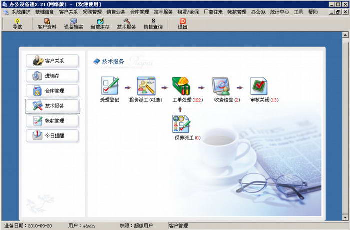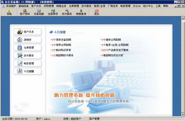 3楼 华军网友 2014-08-08 01:22:24办公设备租赁行业售后管理软件 单机版方便实用,很给力,软件非常好用!