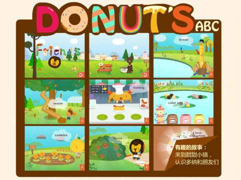 初次见面,我们的主人公小狮子Donut会带着小朋友们去甜甜小镇玩儿,那儿的一切充满无限的奇幻和欢乐,小朋友会看到西瓜山,蛋糕草、糖果树、奶酪滑梯和布丁房子。多纳的朋友们也那么的与众不同,果冻大象(jello)、饼干兔(cookie)、汉堡猫(hamburger)、热狗狗(hotdog)、面包鳄鱼(bread)。快来和这些有趣的小家伙做游戏,一起学习英语吧!