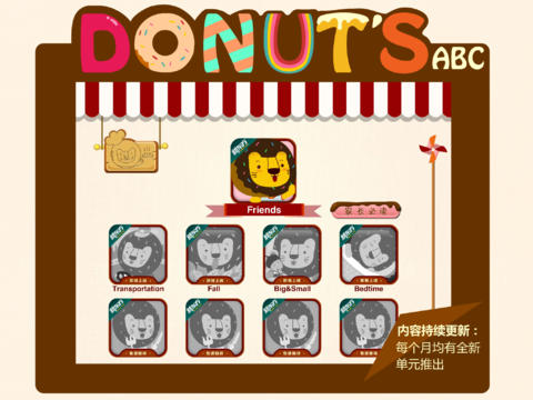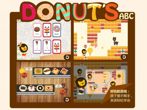 1 给小狮子喂甜甜圈:小肌肉协调型游戏,学习单词donut 句型 I love donuts.