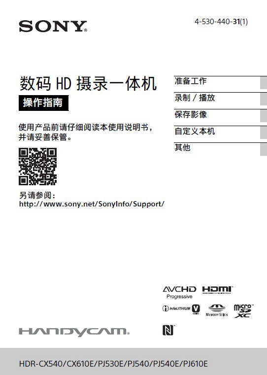 SONY索尼HDR-CX610E数码摄像机说明书