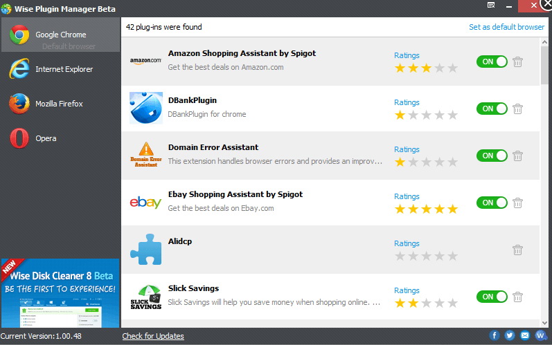 3楼 华军网友 2018-03-12 23:12:29Wise Plugin Manager功能全面,使用也挺方便的。