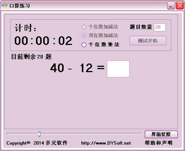 3楼 华军网友 2015-02-18 13:11:28多元口算练习方便实用,很给力,软件非常好用!