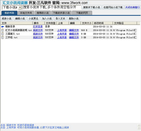 3楼 华军网友 2016-10-12 01:11:06汇文小说阅读器功能全面,使用也挺方便的。