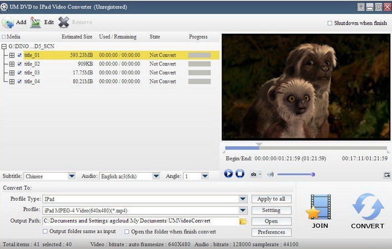3楼 华军网友 2016-06-06 15:02:07UM DVD to IPad Video Converter功能全面,使用也挺方便的。