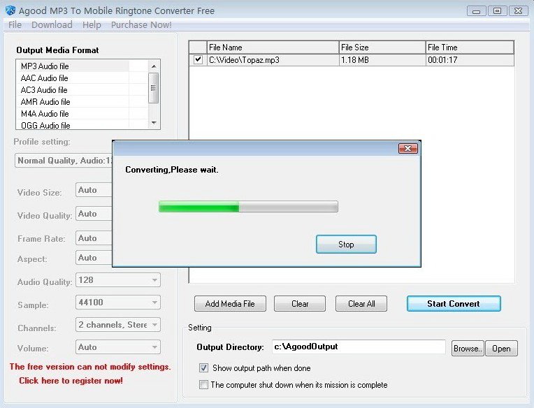 3楼 华军网友 2016-02-28 09:08:53Agood MP3 To Mobile Converter Free功能全面,使用也挺方便的。