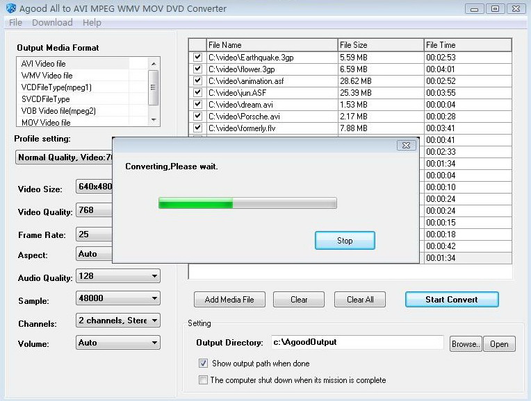 1楼 华军网友 2014-09-24 14:39:47Agood All to AVI MPEG WMV MOV Converter很好用,谢谢啦!!