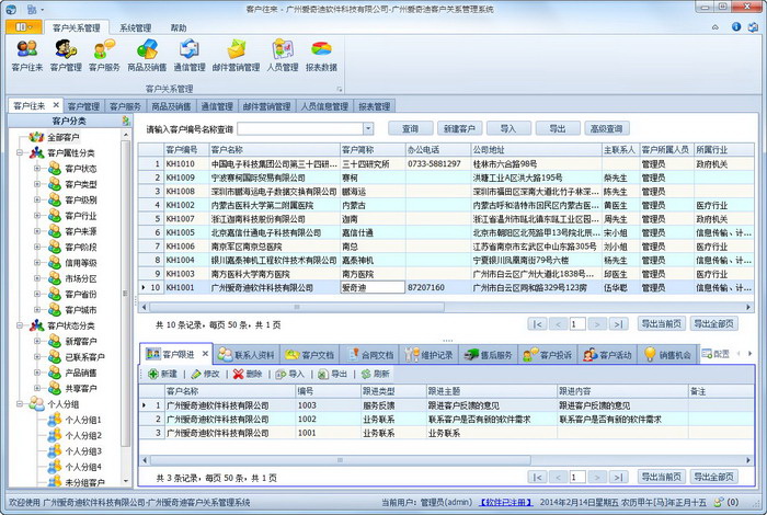 广州爱奇迪客户关系管理系统,是一款专业的客户关系管理软件(CRM管理系统),软件以客户为中心,把科学的管理与信息技术结合起来,实现市场、销售、服务协同工作统一管理。帮助企业规范业务流程、提高客户挖掘能力和客户服务质量、有效管理客户资源、提高销售成功率,达到全面提升企业核心竞争力的目的。