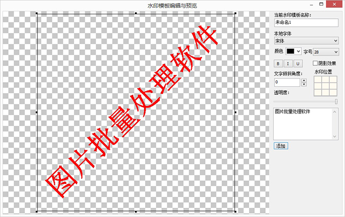 3、水印文字透明度、文字倾斜角度:360度全面支持.