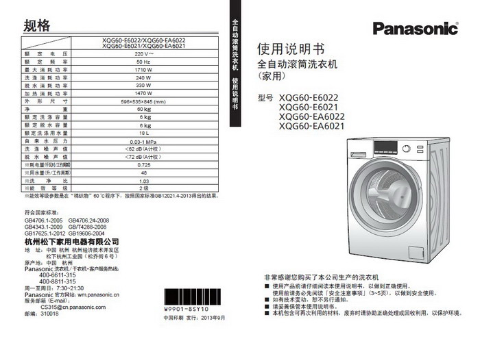 3楼 华军网友 2019-01-12 11:59:41松下XQG60-E6021洗衣机使用说明书整体感觉不错,还是挺满意的,安装运行很流畅!按照安装步骤指导来非常顺利!
