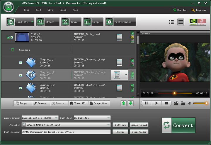 2楼 华军网友 2017-10-18 21:40:364Videosoft DVD to iPad 2 Converter功能全面,使用也挺方便的。