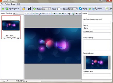 1楼 华军网友 2015-04-21 09:43:42Boxoft JavaScript SlideShow Builder界面设计很容易上手,功能很丰富,本人极力推荐!