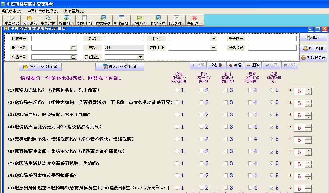 老年人中医药服务居民健康体检分析报告四合一系统2014