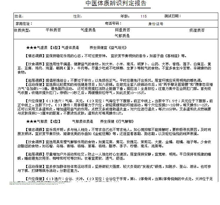 老年人中医药服务居民健康体检分析报告四合一系统2014评论