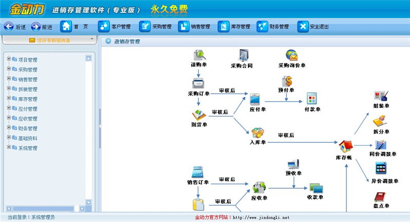 1、销售流程:从销售报价、销售订货合同、销售发货、销售退货等一系列销售环节工作进行全面跟踪,控制掌握销售动态。销售发货单可以参照销售订货合同生成,发货单审核后自动生成出库单;销售订货合同或发货单审核后生成应收款。减少重复录入工作。