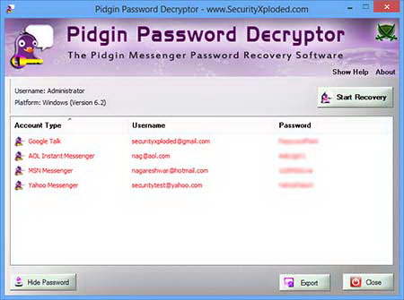 1楼 华军网友 2020-01-06 20:04:40Pidgin Password Decryptor很好用,谢谢啦!!