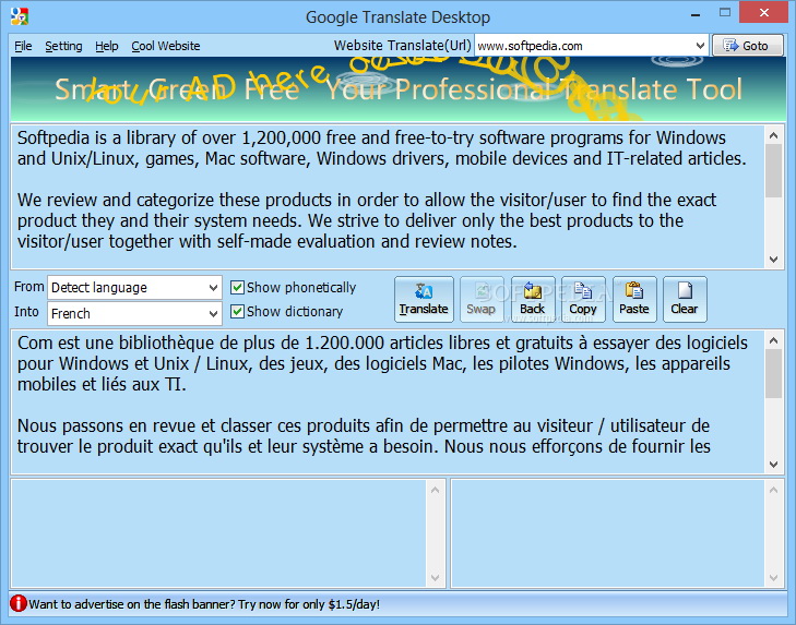 1楼 华军网友 2014-08-02 17:06:09Google Translate Desktop很好用,谢谢啦!!