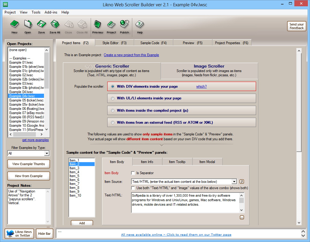 1楼 华军网友 2015-02-16 19:49:04Likno Web Scroller Builder很好用,谢谢啦!!