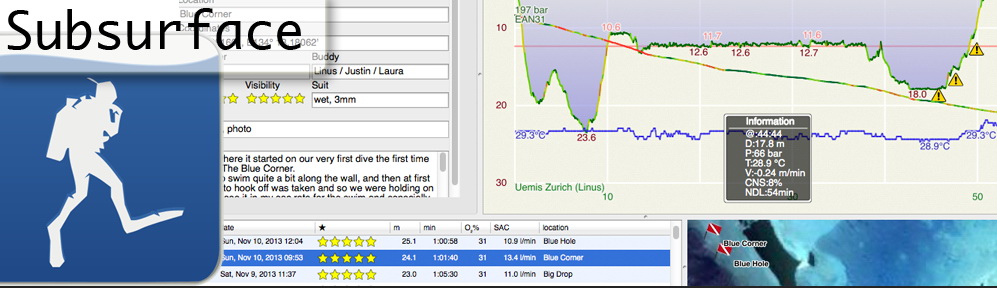 2楼 华军网友 2016-12-11 08:07:40Subsurface For Mac界面设计很容易上手,功能很丰富,本人极力推荐!