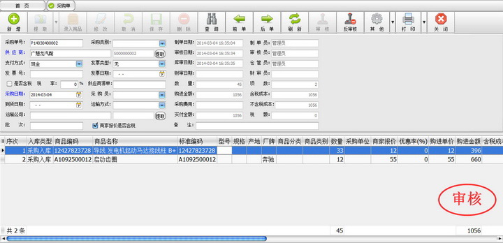 6、采购单同一单据支持多种类型的入库形式,从而避免了不同的入库类型开多张采购单造成的麻烦。