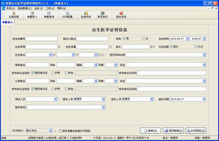 1楼 华军网友 2016-05-24 07:40:09优图出生医学证明管理软件很好用,谢谢啦!!