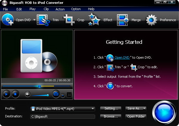 1楼 华军网友 2016-03-28 19:28:30Bigasoft VOB to iPod Converter界面设计很容易上手,功能很丰富,本人极力推荐!