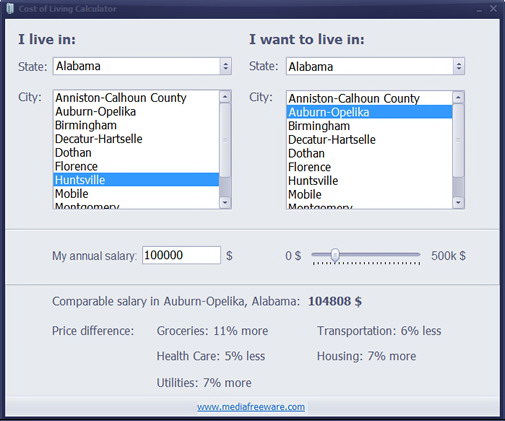 3楼 华军网友 2016-12-10 23:40:02Cost of Living Calculator超级棒!点一亿个赞!!!