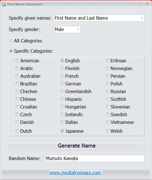 3楼 华军网友 2019-09-07 09:16:02Free Name Generator功能全面,使用也挺方便的。