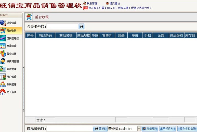 《旺铺宝商品销售管理软件》是一款专门针对小商品销售收银研发的一款通用型管理软件。专为超市、商店、日用百货等开发设计,功能齐全、操作简易。配合普通电脑即可使用,比专业POS机管理更方便灵活,成本更低。店长和销售员很容易掌握软件的操作,界面简洁,3分钟快速上手,是小商品信息化管理的首选。