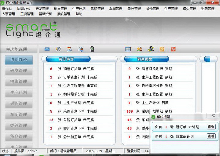 来料加工版:灯企通(来料加工版)主要针对灯饰配件代加工企业而开发的信息管理系统。该产品功能包括:收发管理、车间管理、财务管理、系统管理。