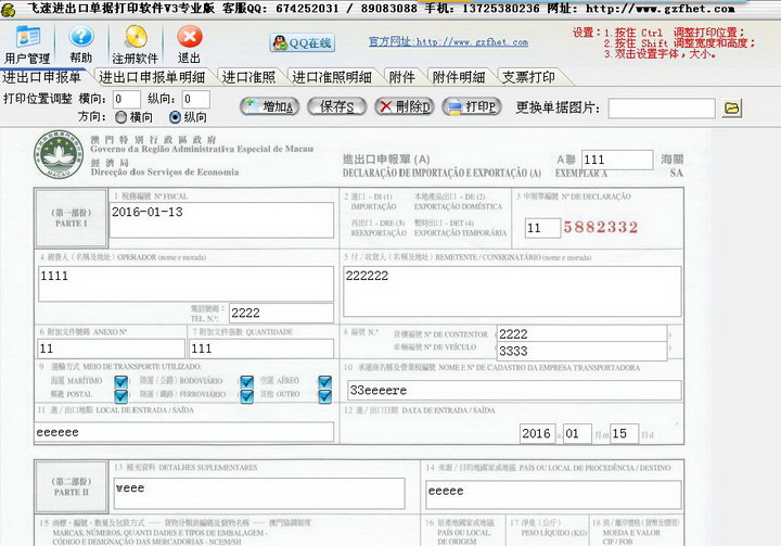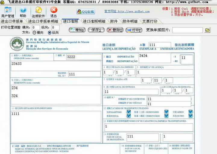 飞速进出口单据打印软件