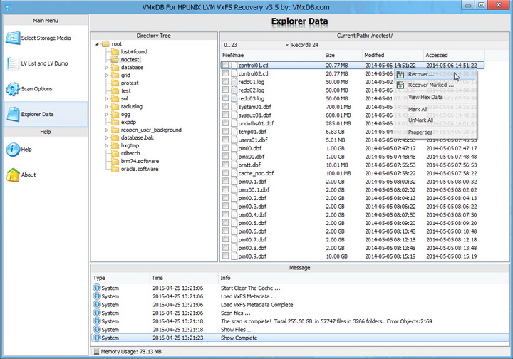 VMxDB For HPUNIX LVM VxFS Recovery(HPUX数据恢复软件)