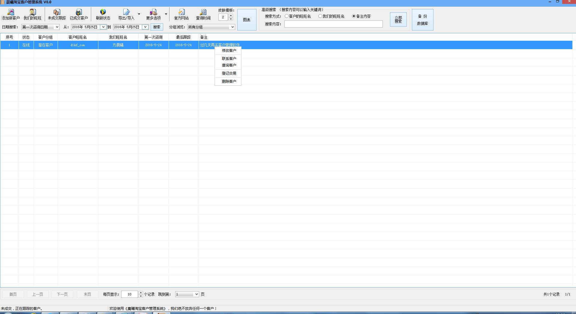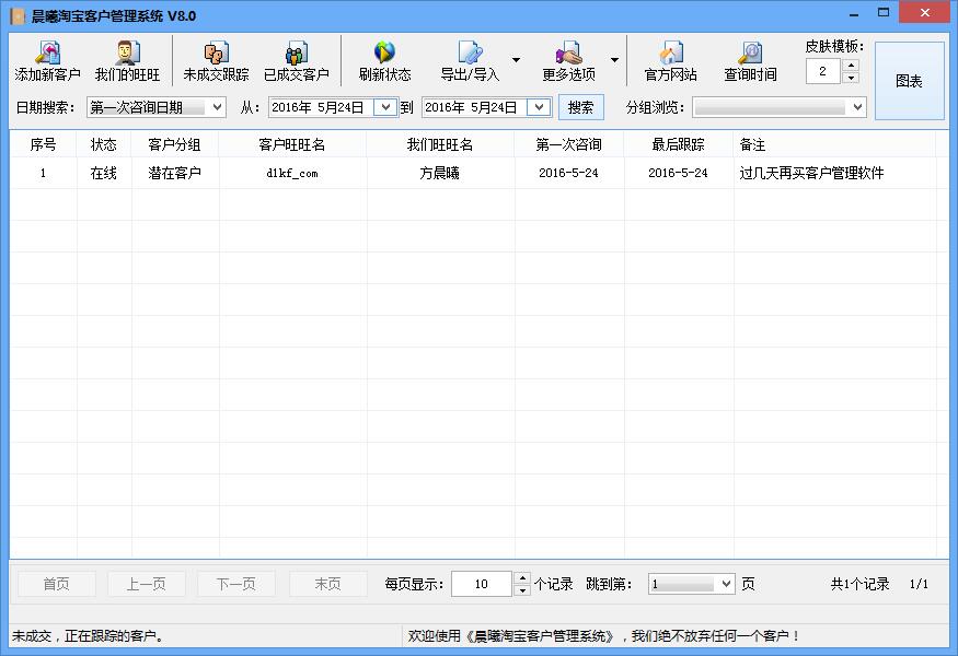1楼 华军网友 2020-10-01 22:16:43晨曦淘宝客户管理系统很好用,谢谢啦!!