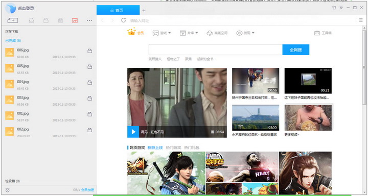 1、迅雷9的主界面在原有的下载区域基础上,增加了浏览器区域,主界面现在分为左侧的【下载管理】区域和右侧的【浏览器】区域。