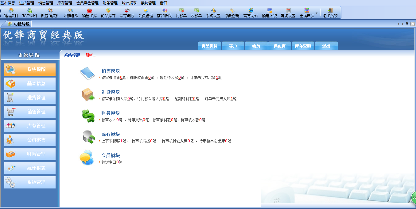2楼 华军网友 2021-09-08 19:33:09优锋商贸经典版进销存软件界面设计很容易上手,功能很丰富,本人极力推荐!