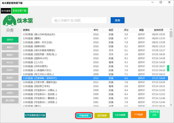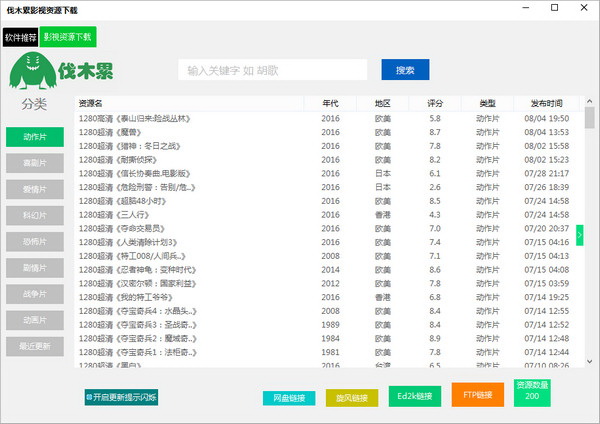 2楼 华军网友 2018-12-05 16:47:00伐木累影视资源下载方便实用,很给力,软件非常好用!