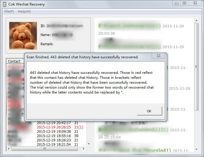 2楼 华军网友 2017-07-17 23:29:08Cok Wechat Recovery界面设计很容易上手,功能很丰富,本人极力推荐!