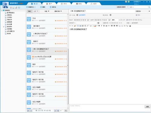 利用笔记本、客户本和标签来对笔记、客户和其它文件来进行分类整理,实现企业资源利用的最大化。