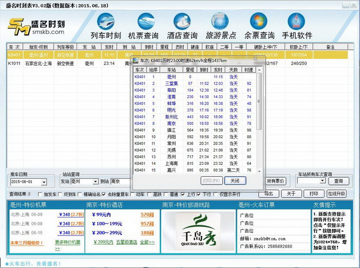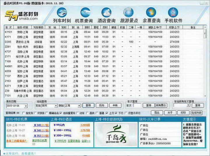 1楼 华军网友 2017-10-21 01:05:59盛名列车时刻表·电脑安装版很好用,谢谢啦!!