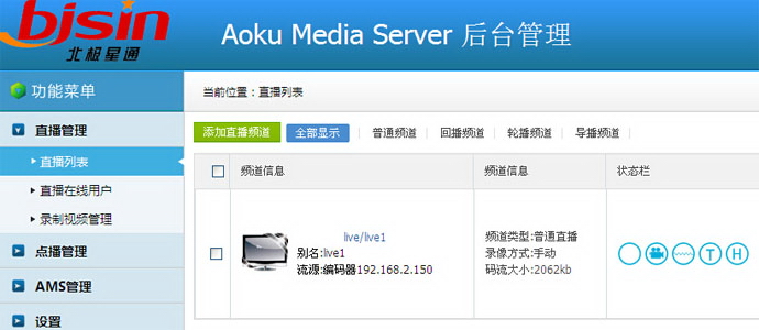 AOKU AMS流媒体服务系统是北极星通公司采用C++开发的一套高性能流媒体服务系统,它能够运行在Windows,linux,android等系统平台上,单服务器可支持3000个以上的并发用户访问。
