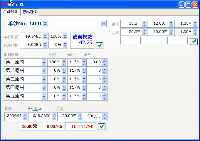 .面料、服装成本计算器 .毛纺布料原料纤维选用计算器 +进出口商品代码查询