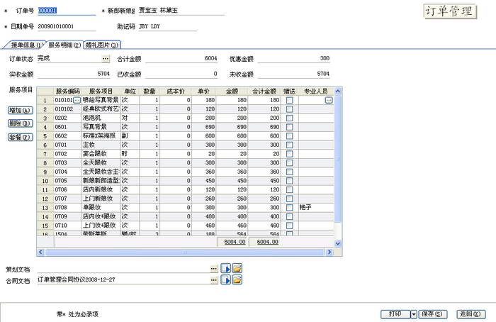 订单打印时可以控制是否打印服务项目单价,保护公司的商业机密。